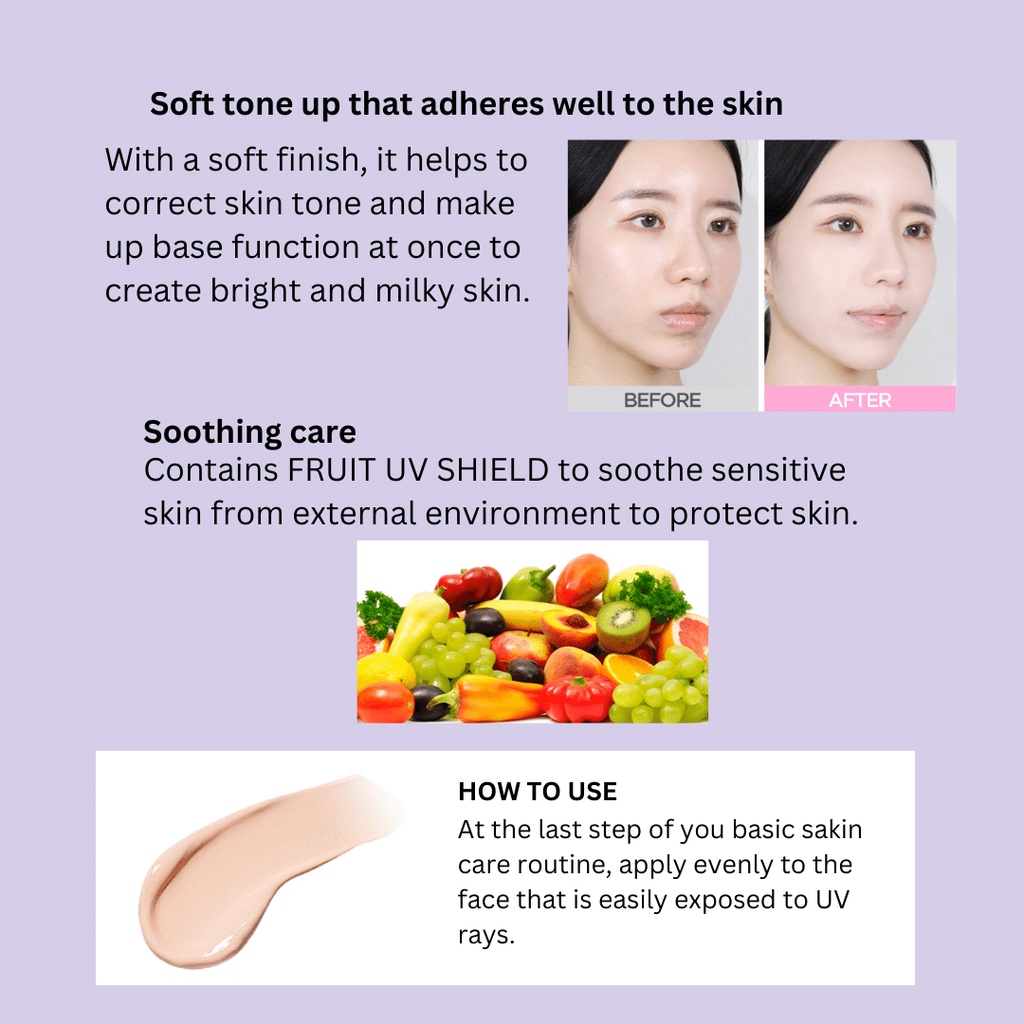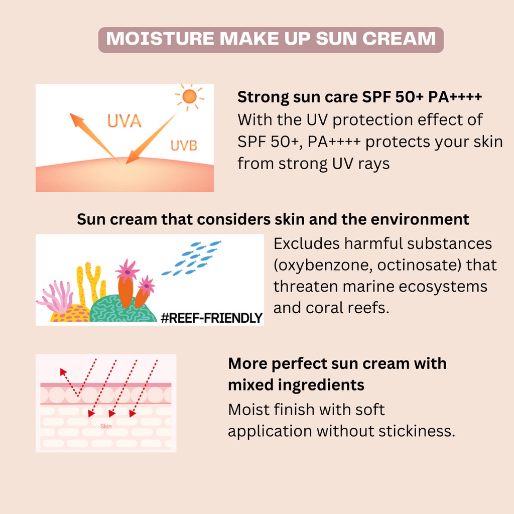 Toned-up sunscreen with a lot of moisture.It naturally adjusts the skin tone with a moist finish to create a bright and glossy skin. It was produced by excluding harmful ingredients that threaten the marine ecosystem and coral reefs.It contains Salocor Moist with excellent moisture retention to keep your skin moisturized. It doesn’t feel stiff and it applies smoothly, making it moist.