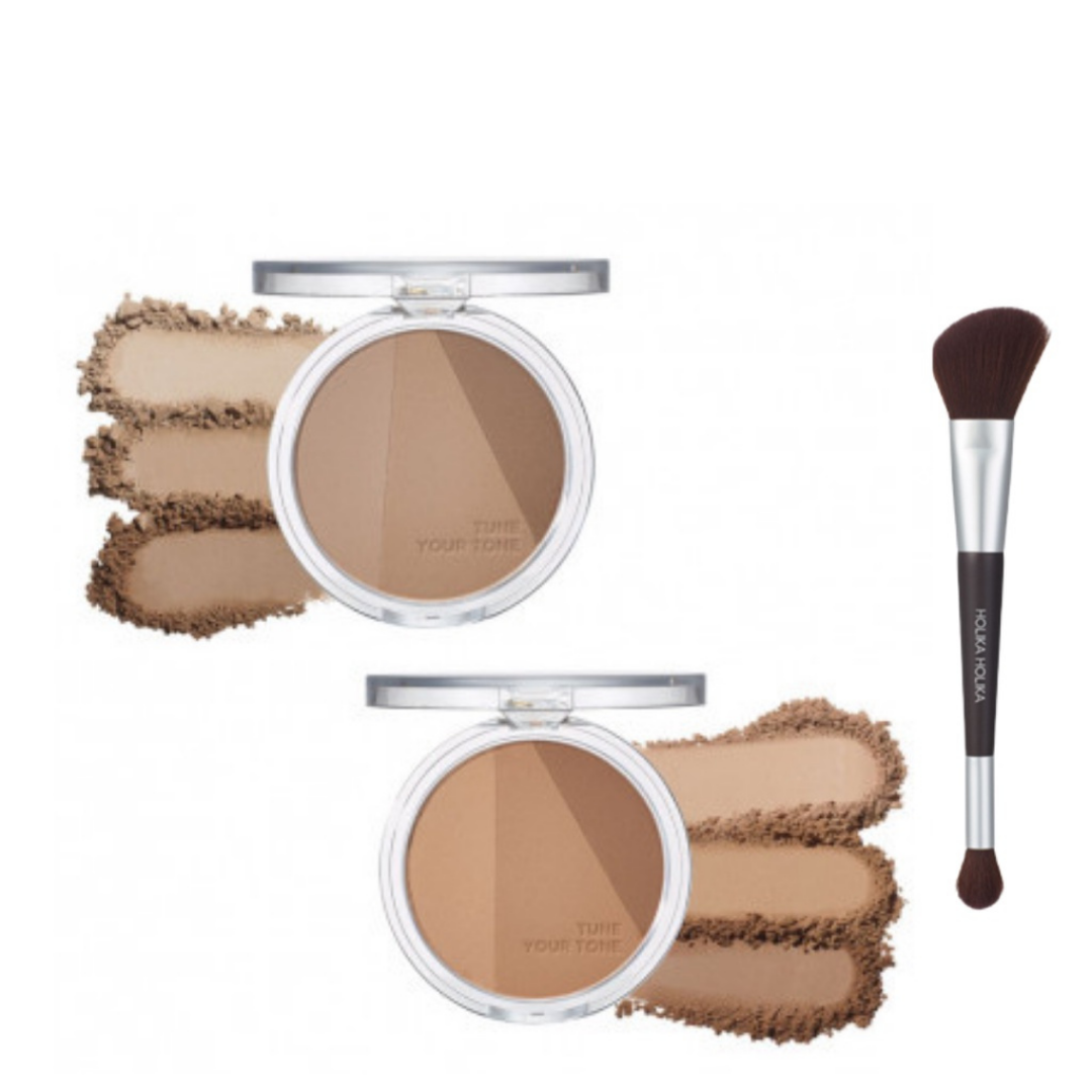 Accentuate your favourite facial features and achieve a sun-kissed complexion with pressed shading/bronzing powder. With these three different natural-looking shades that blend seamlessly onto skin, you can add depth and dimension to your face with a long-wearing matte finish. Blendable and buildable formula can be applied to the entire face for a radiant glow, or under the cheekbones to create a sculpted, defined makeup look. Double-sided brush is included in the set.